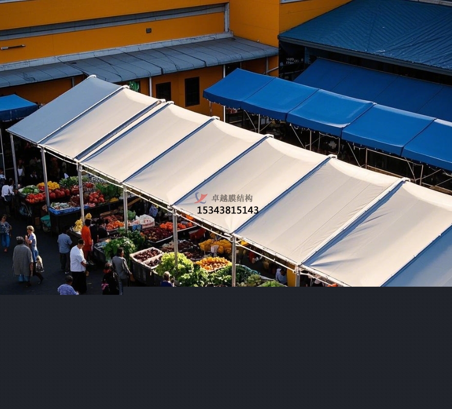 在城市的煙火氣味中,農(nóng)貿(mào)商場是不可或缺的存在,它承載著新鮮食材的匯聚與居民日常生活的快捷。但是,傳統(tǒng)農(nóng)貿(mào)商場頂棚在長期運(yùn)用中暴露出許多問題,如年久失修易漏雨、空間布局局促、外觀陳腐等。膜結(jié)構(gòu)頂棚的出現(xiàn),宛如一陣清風(fēng),為農(nóng)貿(mào)商場帶來了全新的生機(jī)與革新。