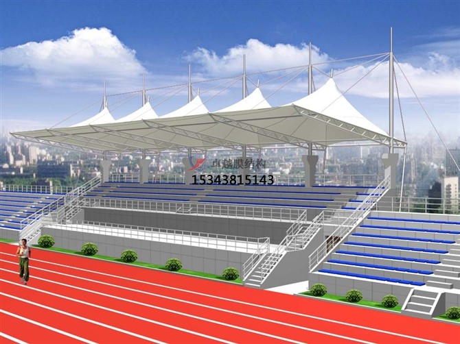 張拉膜看臺(tái)主要用于各類地方體育場(chǎng)主席臺(tái)雨棚,各類學(xué)校體育場(chǎng)看臺(tái)雨棚遮蓋,我公司是國(guó)內(nèi)較早從事大懸挑張拉膜結(jié)構(gòu)看臺(tái)設(shè)計(jì)施工的專業(yè)廠家,下面介紹一下我們?cè)诒6ㄊ兄苓吙h市完工的一些張拉膜看臺(tái)設(shè)計(jì)施工案例,我公司先后在保定市周邊承接了保定學(xué)院看臺(tái)雨棚、保定市第七中學(xué)張拉膜看臺(tái)罩棚、保定動(dòng)力工程技工學(xué)校張拉膜看臺(tái)遮陽(yáng)棚張拉膜看臺(tái)遮陽(yáng)棚等設(shè)計(jì)施工項(xiàng)目,簡(jiǎn)介如下: