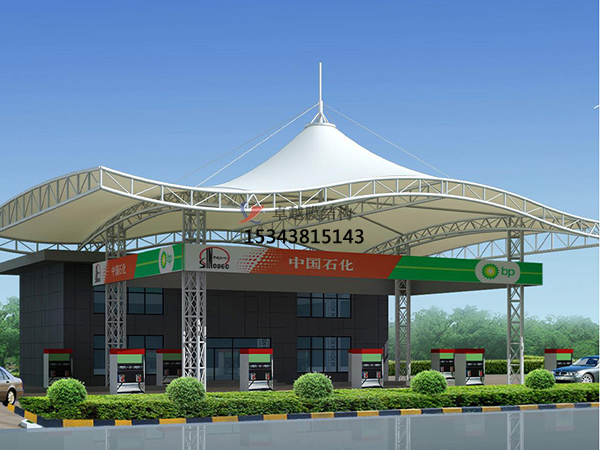 加油站罩棚膜結(jié)構(gòu)作為一種現(xiàn)代建筑結(jié)構(gòu),以高強(qiáng)度高柔韌性薄膜材料與張拉體系相結(jié)合,形成的具有一定剛度的空間結(jié)構(gòu)體,是集建筑學(xué)、結(jié)構(gòu)力學(xué)、精細(xì)化工與材料科學(xué)為一體的高科技工程。