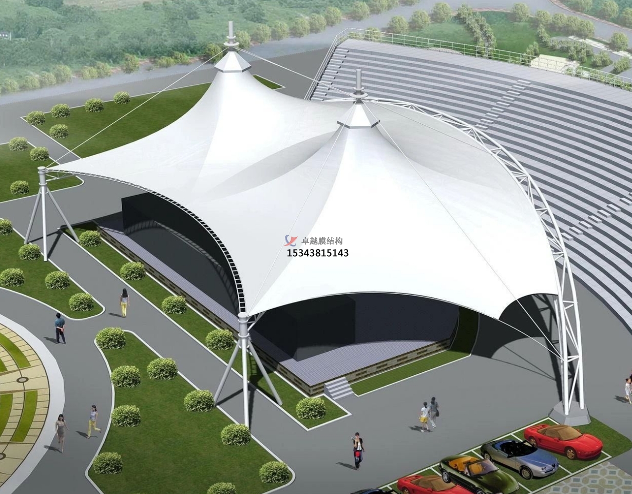 在野外展覽、商業(yè)促銷活動、主題派對等場合,舞臺膜結(jié)構(gòu)也得到了廣泛運用。它可以作為扮演舞臺、展現(xiàn)平臺或活動場所的遮陽設(shè)備。例如,在一些汽車品牌的野外展現(xiàn)活動中,膜結(jié)構(gòu)舞臺被規(guī)劃成與汽車品牌形象相符合的造型,既為新車展現(xiàn)供給了一個共同的平臺,又能招引觀眾的注意力,提高品牌宣傳作用。在野外音樂節(jié)、美食節(jié)等活動中,膜結(jié)構(gòu)舞臺為扮演樂隊、扮演團隊供給了扮演空間,一起其共同的造型也成為活動現(xiàn)場的一道亮麗風(fēng)景線,增加了活動的招引力和趣味性。