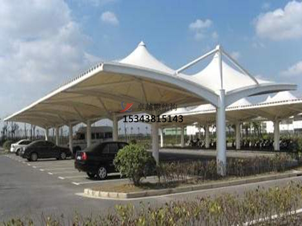 膜結(jié)構(gòu)車棚膜結(jié)構(gòu)所用的膜材料為具有、阻燃、耐久、自潔等特性的復(fù)合材料,一般由基布和涂層二部分組成。基布主要采用聚脂纖維或玻璃纖維絲編織而成,有平織和絞等多種編織方法,不同的膜結(jié)構(gòu)車蓬編織方法影響著膜材料的經(jīng)緯向力學(xué)性能指標(biāo),膜的抗拉強度和抗撕裂強度等;涂層材料主要有聚四氟乙烯和聚氯乙烯,在一定程度上提高了膜材料各項強度指標(biāo),為提高膜材料的耐久、自潔等特性,表面往往有一層氟涂層或硅涂層,膜材料的耐火、耐久及防水、自潔等性能,決定著膜材料的物理特性。