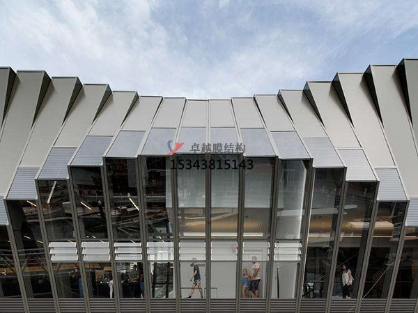 1.膜結(jié)構(gòu)修建屋面分量僅為慣例鋼屋面的三十分之一,而這就降低了墻體和根底的造價。加上膜結(jié)構(gòu)擁有獨特的外型和夜景作用,有著明顯的修建可識性和商業(yè)效應(yīng),可以為商家?guī)斫?jīng)濟(jì)效益。