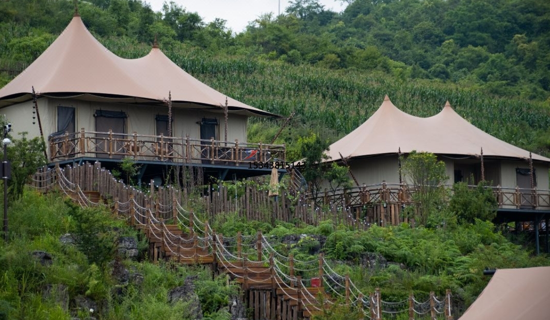 膜結(jié)構(gòu)帳篷酒店膜材是一種無(wú)毒的高分子材料。它具有無(wú)味的特點(diǎn),安裝后沒(méi)有一絲味道。另外,它擁有抗紫外線和反射光線極強(qiáng)的特點(diǎn),而且其抗撕裂的性能強(qiáng),還有B1/M2級(jí)別的阻燃性能,并且使用壽命極強(qiáng),一般壽命都在20年以上。