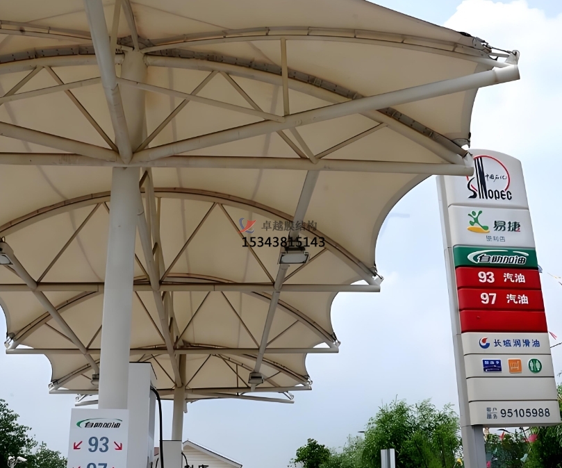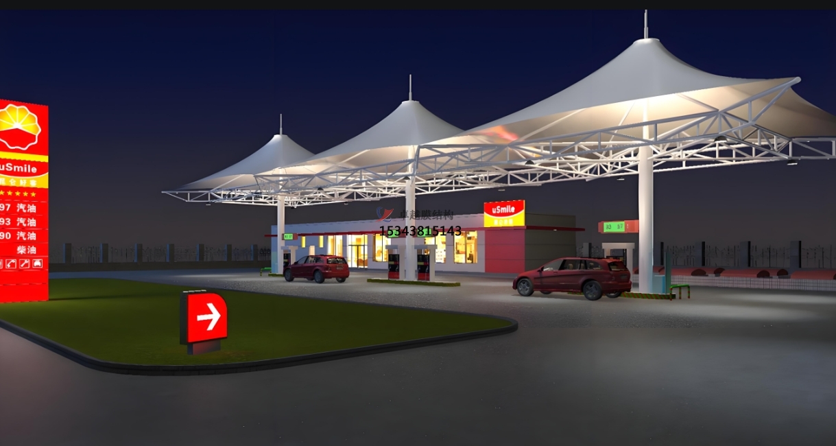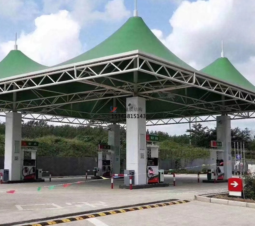 優(yōu)異的透光性:部分膜材料具有良好的透光性,能夠為加油站提供充足的自然光照,減少照明設(shè)備的使用,節(jié)約能源。