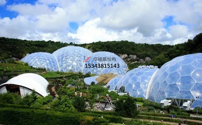 英國伊甸園,被譽為“世界第八大奇跡”,是ETFE膜結(jié)構(gòu)建筑的經(jīng)典范例,從形態(tài)上看,像放大了無數(shù)倍的水泡。伊甸園以熱帶植物科普教育為主旨,“大水泡”里培育著原產(chǎn)于非洲、亞洲、歐洲、大洋洲和美洲的熱帶植物,每年都能吸引來自世界各地的約120萬參觀者,已成為名列全英十大著名休閑景點之一。