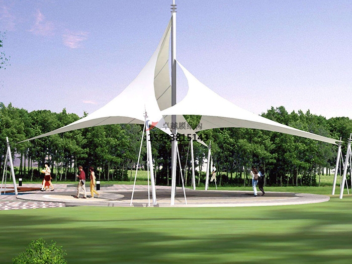 5、張拉膜景觀布局跨度比較大,并且自重比較輕,可以靈活設(shè)計,并且空間利用得到更大化;