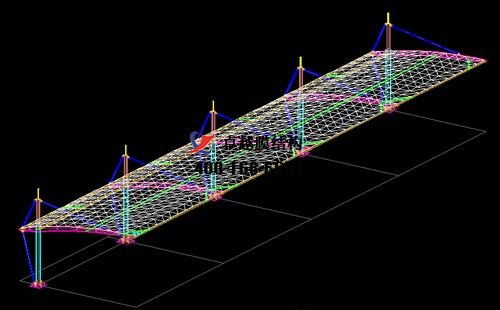 本工程膜材采用白色高端國產(chǎn)星益達PVDF高自潔環(huán)保建筑膜材,鋼結(jié)構(gòu)采用更好的標準Q235B鋼材,表面采用酚醛底漆處理,面漆采用白色鋼結(jié)構(gòu)專用快干磁漆。