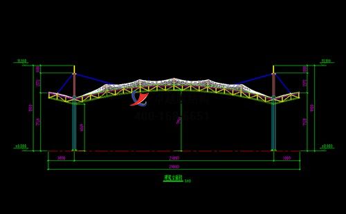本工程膜材采用白色高端國產(chǎn)星益達PVDF高自潔環(huán)保建筑膜材,鋼結(jié)構(gòu)采用更好的標準Q235B鋼材,表面采用酚醛底漆處理,面漆采用白色鋼結(jié)構(gòu)專用快干磁漆。