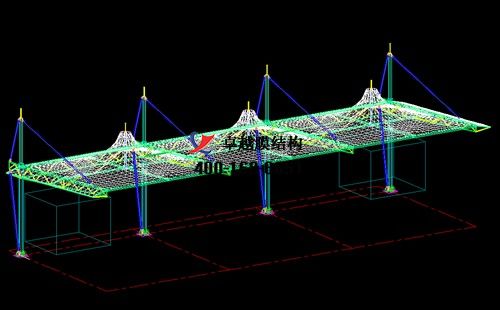 本工程膜材采用白色高端國產(chǎn)星益達(dá)PVDF高自潔環(huán)保建筑膜材和ETFE高端膜材,鋼結(jié)構(gòu)采用更好的標(biāo)準(zhǔn)Q235B鋼材,表面采用酚醛底漆處理,面漆采用白色鋼結(jié)構(gòu)專用快干磁漆。