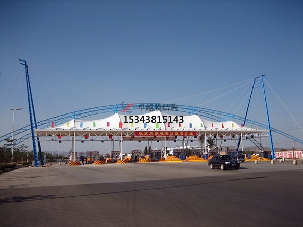 一、造型獨(dú)特,辨識(shí)度高,由于膜材重量輕,適合收費(fèi)站這種大跨度的建筑,而且是采用張力結(jié)構(gòu)所以在造型設(shè)計(jì)上具有很大的優(yōu)勢,可以實(shí)現(xiàn)非常具有藝術(shù)氣息的造型。