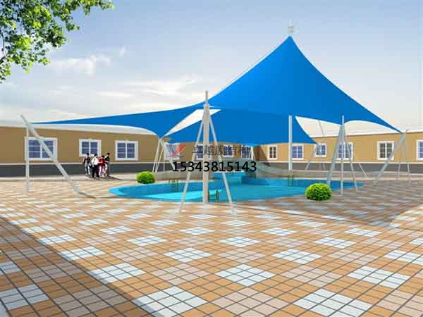 索膜結(jié)構(gòu)景觀棚的特點(diǎn):索膜結(jié)構(gòu)景觀棚具有造型美觀獨(dú)特、輕質(zhì)高強(qiáng)、環(huán)保節(jié)能和自潔性強(qiáng)等特點(diǎn)。索膜結(jié)構(gòu)可以通過調(diào)整張拉力和支撐點(diǎn)的位置,創(chuàng)造出各種獨(dú)特的形態(tài),如波浪形、穹頂形、風(fēng)帆形等,甚至可以設(shè)計(jì)成抽象的藝術(shù)圖案,具有強(qiáng)烈的雕塑感和現(xiàn)代藝術(shù)氣息,能夠?yàn)榄h(huán)境增添獨(dú)特的景觀效果。膜材一般采用高強(qiáng)度的纖維織物,如玻璃纖維、聚酯纖維等,重量輕但強(qiáng)度高,其自重比傳統(tǒng)建筑結(jié)構(gòu)小得多,同時(shí)卻能承受較大的荷載,在大跨度空間的應(yīng)用上具有優(yōu)勢(shì),可有效降低基礎(chǔ)和支撐結(jié)構(gòu)的荷載。膜材具備良好的耐候性和抗老化性能,使用壽命較長(zhǎng),一般可達(dá)十年以上,減少了頻繁更換帶來(lái)的資源浪費(fèi)和環(huán)境污染。而且部分膜材可回收再利用,符合當(dāng)今社會(huì)提倡的綠色發(fā)展理念。一些高品質(zhì)的膜材表面具有防護(hù)涂層,能夠使膜面具有自潔功能,雨水沖刷即可帶走表面的灰塵和污垢,保持膜面的清潔,降低了維護(hù)成本。