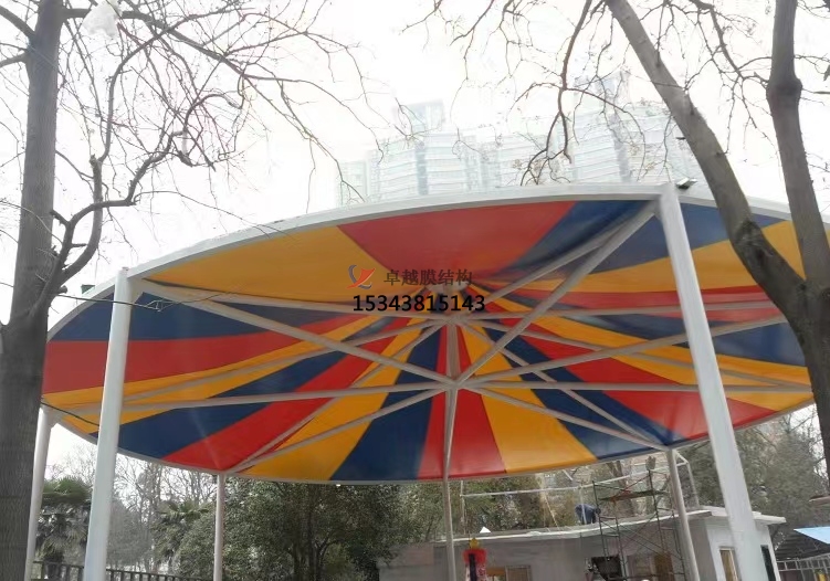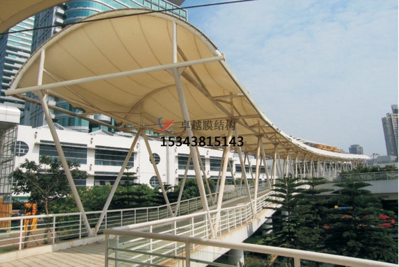膜結(jié)構(gòu)遮陽(yáng)棚造型設(shè)計(jì):其造型設(shè)計(jì)主要從整體風(fēng)格和形狀設(shè)計(jì)兩方面出發(fā)。其中整體風(fēng)格是指根據(jù)使用場(chǎng)所和客戶喜好確定遮陽(yáng)棚的整體風(fēng)格,如簡(jiǎn)約現(xiàn)代、歐式古典、自然生態(tài)等。可以通過調(diào)整遮陽(yáng)棚的形狀、線條、色彩來實(shí)現(xiàn)不同的風(fēng)格效果。形狀設(shè)計(jì),膜結(jié)構(gòu)遮陽(yáng)棚的形狀豐富多樣,常見的有平頂式、坡頂式、拱形式、傘形式等。還可以根據(jù)場(chǎng)地的特殊要求和創(chuàng)意設(shè)計(jì)出獨(dú)特的形狀,如仿生形、自由曲線形等,以增加遮陽(yáng)棚的美觀性和獨(dú)特性。
