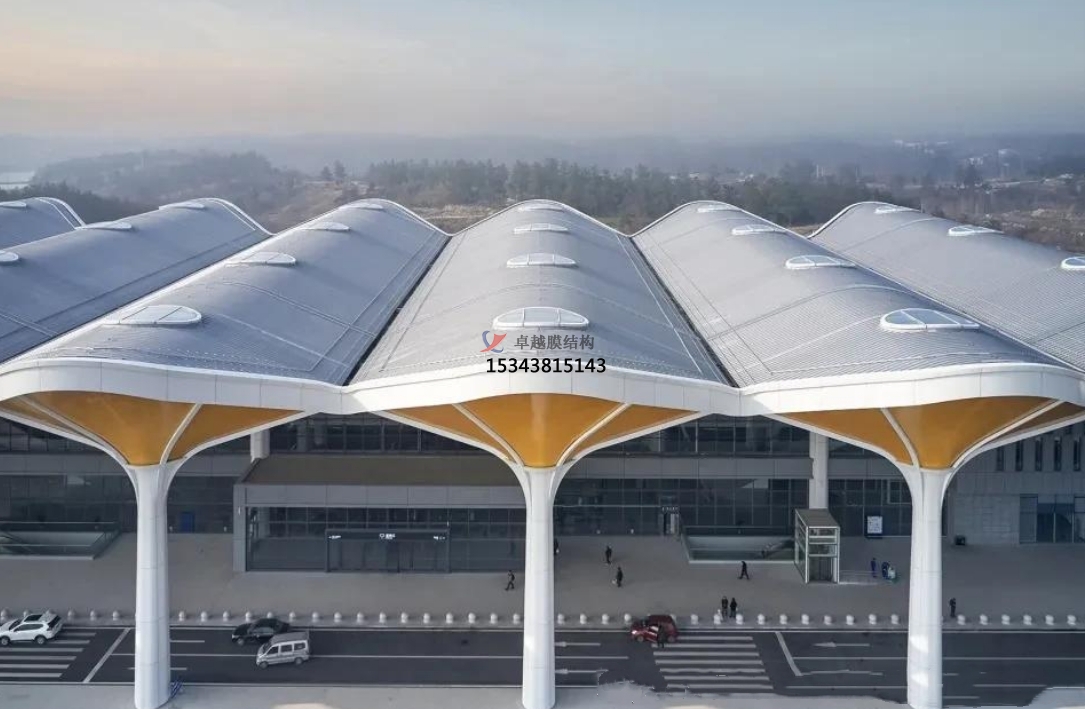 ETFE膜結(jié)構(gòu)將內(nèi)部構(gòu)造徐徐展現(xiàn),猶如樹葉紋理,使建筑空間生動而富有生命力。夜間車站則通過設置于膜結(jié)構(gòu)腔體內(nèi)的 LED燈點亮形成一個發(fā)光體,像一支明亮“燈籠”,照亮旅客回家的路。