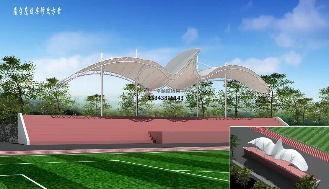 3、呼和浩特市蒙古族學(xué)校體育場看臺(tái)頂棚/運(yùn)動(dòng)場主席臺(tái)/風(fēng)雨操場雨棚生產(chǎn)廠家