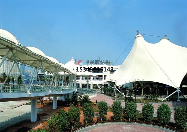 膜材自身具有透光性,種一特色使得張拉膜景觀內(nèi)部很亮,這開創(chuàng)了修建中的很好的例。這種共同的結(jié)構(gòu)能習(xí)慣各種功用,可廣泛應(yīng)用于街景修建、機(jī)場候機(jī)廳、體育場館、會議廳、展覽館等修建,等等的種些特性,使得這種材料具有無限的潛力。