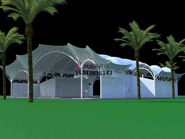 工程結(jié)構(gòu)形式:骨架式膜結(jié)構(gòu)景觀,自然排水。