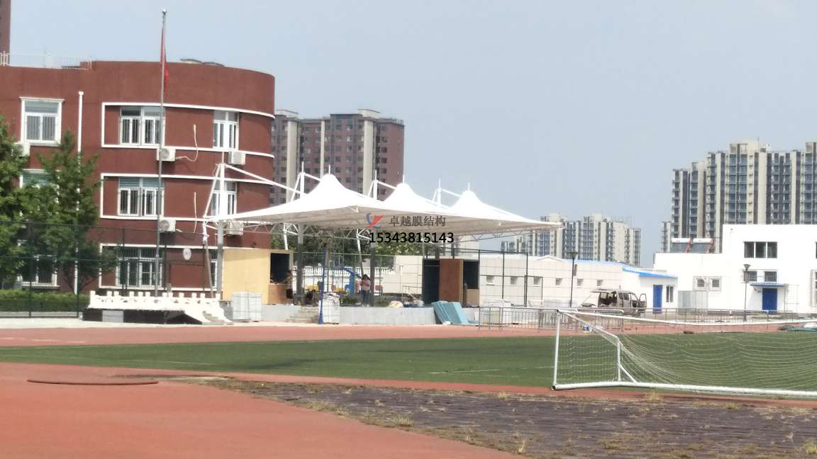 膜結(jié)構(gòu)看臺(tái)的排水措施。因?yàn)橛糜谀そY(jié)構(gòu)中的膜材料本身具有很強(qiáng)的拉伸性能,并且該拉伸性能由于大重力的擠壓作用而容易導(dǎo)致膜結(jié)構(gòu)變形。遇到雨雪天氣時(shí),這種變形會(huì)導(dǎo)致雨水積聚在凹槽中,無法及時(shí)排出。它不僅會(huì)損壞膜材料,還會(huì)導(dǎo)致膜結(jié)構(gòu)被雨水腐蝕,從而嚴(yán)重影響停車棚的質(zhì)量。因此,在施工過程中必須采取排水措施。