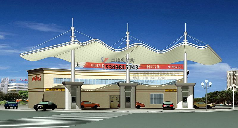加油站罩棚是加油站的重要組成部分,設(shè)計加油站罩棚不僅僅要具有牢固、省電、防水等功能,還要美觀大方呢。膜結(jié)構(gòu)輕巧、別致的造型在停車場及候車廳的建設(shè)中擔當了重要角色,除了滿足防風(fēng)雨、防日曬等基本功能外,并有較好的標識招攬效果,展現(xiàn)了人們個性化的一面。