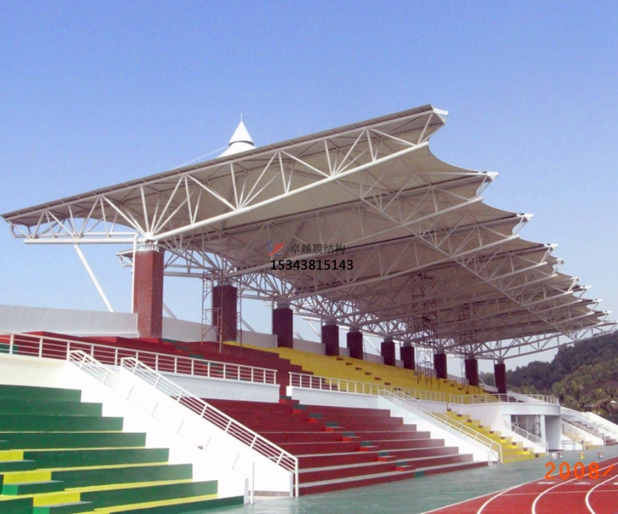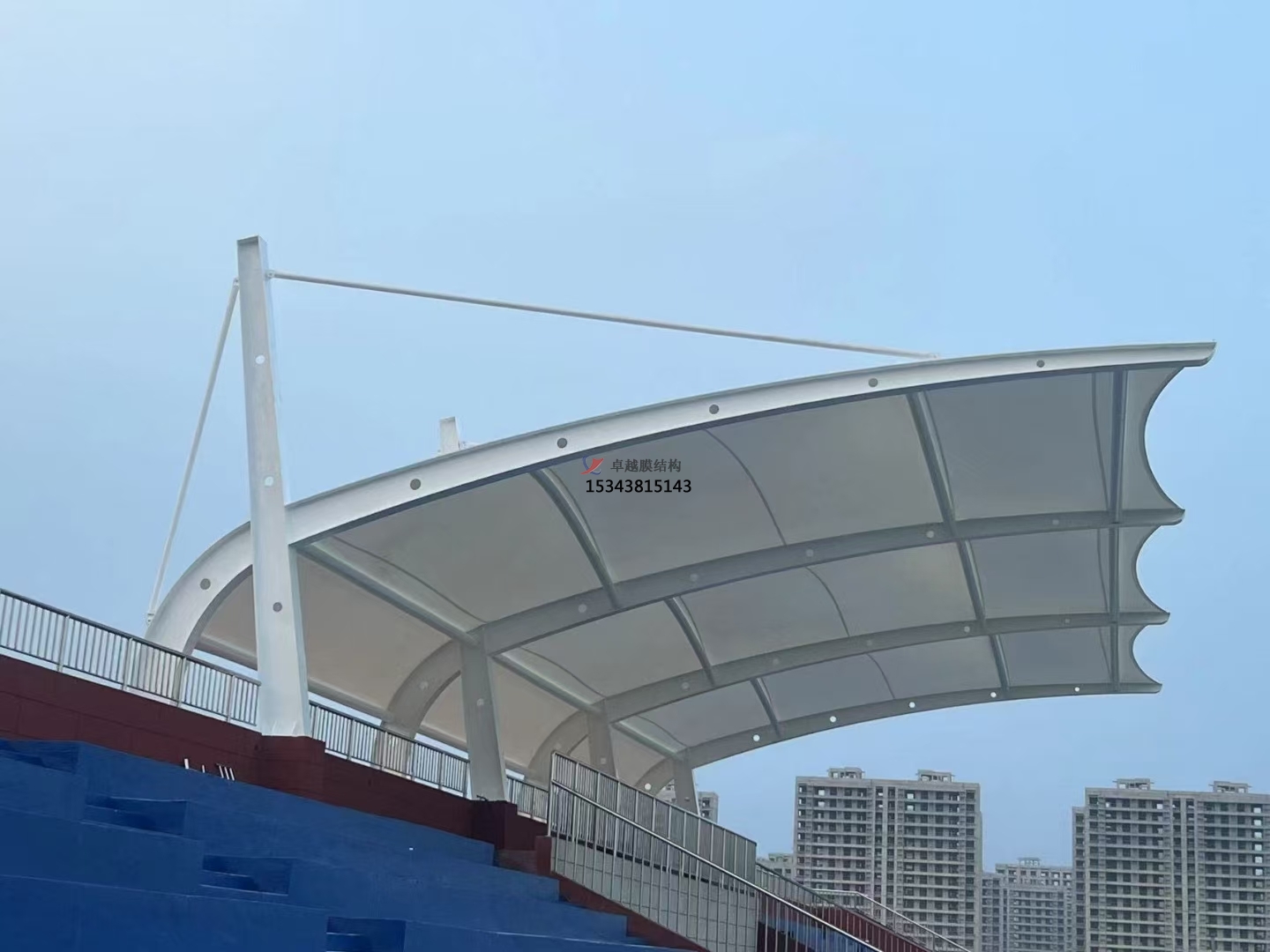 膜結(jié)構(gòu)看臺的主要功能是為學生提供良好的休息場所。它還起到防雨的作用。這種膜結(jié)構(gòu)支架是由比較好的合成材料與強度高的膜材料混合而成,整體結(jié)構(gòu)嚴謹,造型新穎,它的防雨能力比普通材料的要好一些。