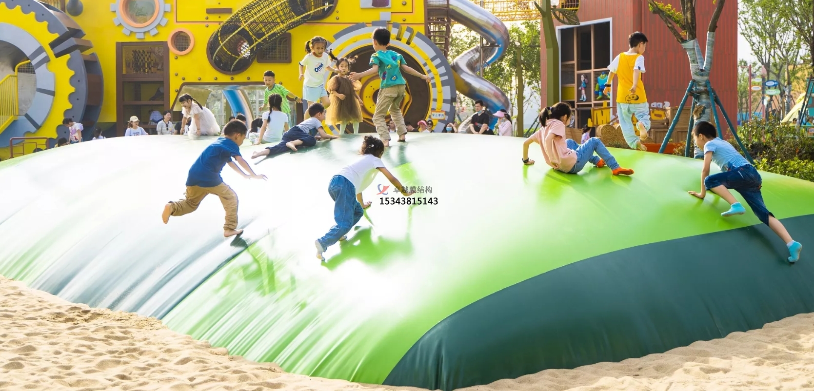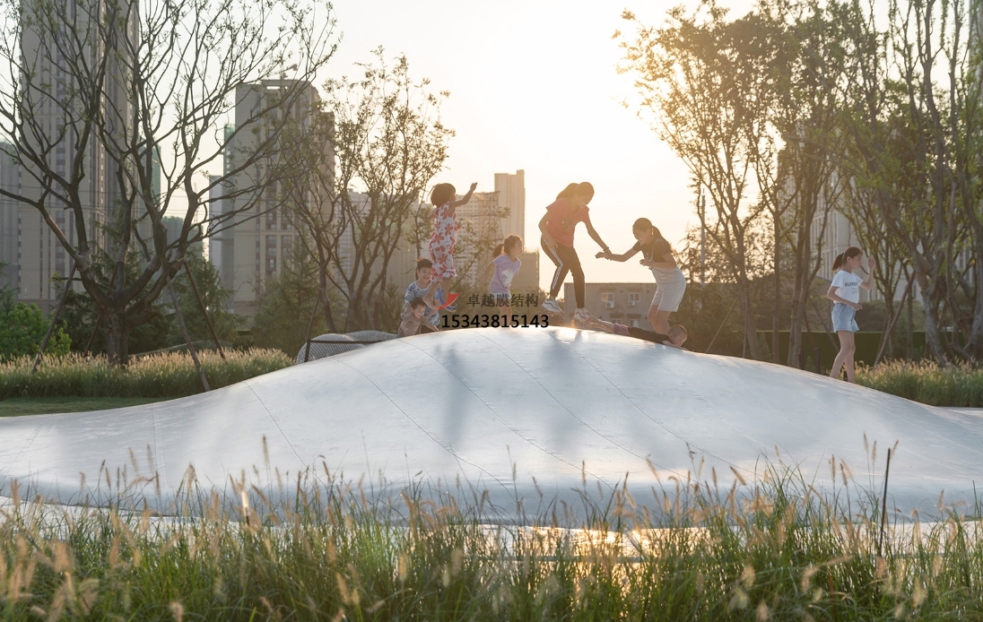 雙層膜結構:蹦蹦云采用雙層膜結構,外層膜與內層膜協同工作。外膜直接接觸外界環(huán)境與游客,承擔著主要的耐磨、抗紫外線以及自潔功能。它選用的是高強度膜材,如進口 pvdf 材質,這種材料極為耐磨,能承受大量游客長期頻繁的踩踏。同時,其出色的抗紫外線性能,使得蹦蹦云即使長時間在烈日下暴曬,也不會出現褪色、老化等問題,保證了設施的長期使用。
