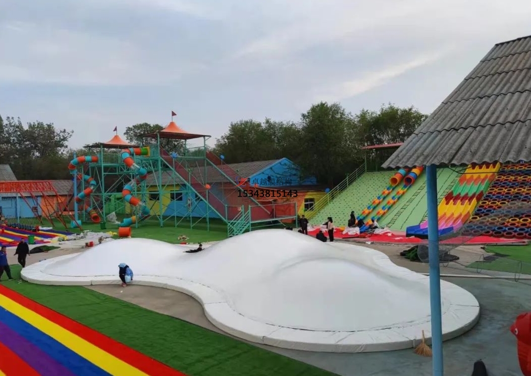 蹦蹦云的設(shè)計高度靈活,可根據(jù)場地環(huán)境定制形態(tài)與規(guī)模。無論是平坦空地還是起伏地形,均可通過設(shè)置沙坑、坡度或洞穴,塑造自然野趣的游樂場景。其純白外觀與云朵造型,既能融入景區(qū)生態(tài)景觀,也可作為商業(yè)地產(chǎn)的網(wǎng)紅打卡點。從親子樂園到度假村,從生態(tài)農(nóng)莊到特色小鎮(zhèn),蹦蹦云以 “可蹦、可滑、可躺” 的多維體驗,滿足全年齡段游客的互動需求。