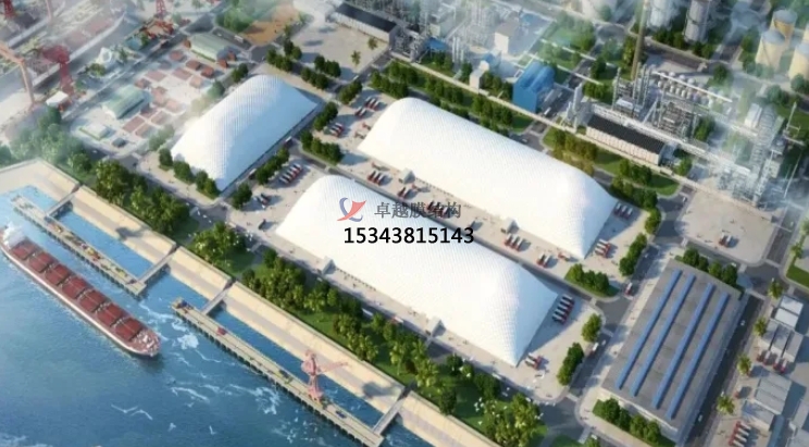 目前我國年吞吐量在1000萬噸以上的沿海港口和200萬噸以上的內(nèi)河港口占全國港口的1/3。而港口發(fā)展中所用到的煤炭、物料、煤矸石、煤堆、水泥白灰等生產(chǎn)原料造成的揚塵污染,給當(dāng)?shù)厣鷳B(tài)及居住環(huán)境造成了嚴(yán)重破壞。而全封閉氣膜倉儲結(jié)構(gòu)在港口碼頭堆場中的應(yīng)用,不但能有效幫助港口企業(yè)實現(xiàn)環(huán)保與經(jīng)濟(jì)并存的雙贏局面,還將促成我國港口形成綠色生態(tài)新發(fā)展格局。