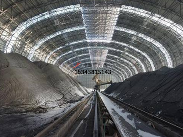 膜結(jié)構(gòu)倉(cāng)庫(kù)是目前發(fā)展很快的一種新型空間結(jié)構(gòu),是一種效率極高的張力集成體系,可以充分發(fā)揮鋼索的強(qiáng)度與張拉整體結(jié)構(gòu)的空間作用。它通過(guò)鋼骨架、鋼索與膜材共同受力形式穩(wěn)定曲面來(lái)覆蓋建筑空間,具有高度的形體可塑性和結(jié)構(gòu)靈活性,即通過(guò)對(duì)膜材內(nèi)部施加一定的預(yù)張力,使其具備了抵抗外荷載能力,從而充當(dāng)結(jié)構(gòu)材料的一種結(jié)構(gòu)體系。