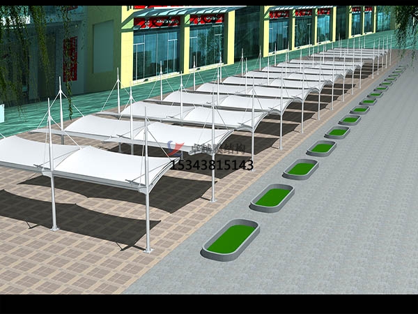 第點(diǎn),膜結(jié)構(gòu)停車棚頂部封板選用茶色(色彩可挑選)陽光板封頂,與車棚全體骨架用壓條鉚接固定,耐酸堿腐蝕,有滿足強(qiáng)度對棚內(nèi)車輛起到保護(hù)效果;