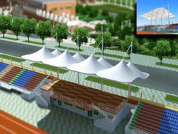2、上饒廣播電視大學張拉膜看臺罩棚