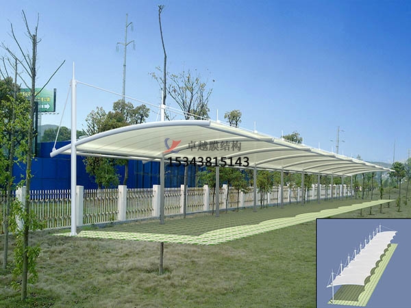 膜材加工制作應(yīng)嚴格按照設(shè)計圖紙和工藝文件的規(guī)定進行。膜材的裁剪、熱合等制作過程應(yīng)采用專用設(shè)備,相關(guān)的計量儀器應(yīng)經(jīng)計量標定合格。 膜結(jié)構(gòu)停車棚工程要使用同一批號的膜材。這樣能保證膜材表面應(yīng)無針孔,無明顯褶皺和明顯污漬,不應(yīng)出現(xiàn)斷絲、裂縫和破損等,色澤應(yīng)無明顯差異。下面介紹一下膜結(jié)構(gòu)安裝前調(diào)試工作。