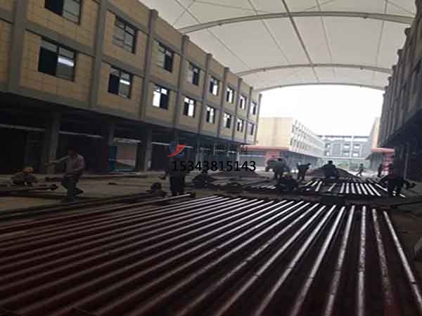 2、膜結(jié)構(gòu)的膜材制作是在專用膜材料加工廠熱合加工而成,通過(guò)現(xiàn)場(chǎng)組裝預(yù)制構(gòu)件(膜片、索等)而實(shí)現(xiàn)的。