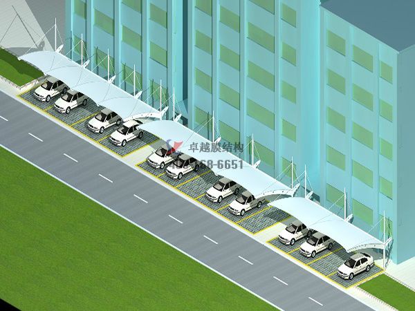 膜結(jié)構(gòu)停車棚主要應(yīng)用于各類商業(yè)地產(chǎn)、住宅樓、寫(xiě)字樓、火車站、機(jī)場(chǎng)、下沉式廣場(chǎng)等遮陽(yáng)遮雨棚,我司是