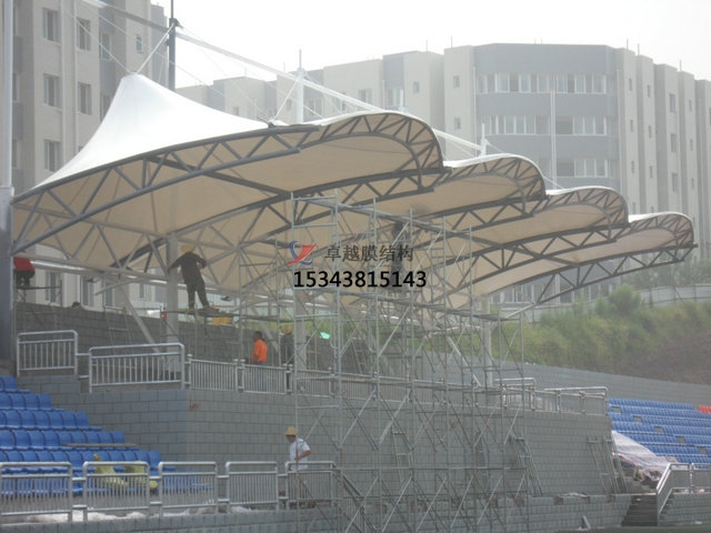 膜結構完工后,需定期進行維護檢查工作,定期檢查支承結構,鋼索,螺栓等處的腐蝕情況。 腐蝕發(fā)生輕微的情況,可先除去腐蝕層,然后重新做好表面的防腐處理。螺栓連接發(fā)生腐蝕,應予 以更換。膜結構為柔性結構,剛度小,自振頻率低,在外來風荷載下易發(fā)生大的變形并伴隨著振動 現象。