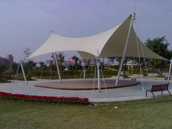膜建筑屋面重量?jī)H為常規(guī)鋼屋面的1/30,膜結(jié)構(gòu)停車篷這就降低了墻體和基礎(chǔ)的造價(jià)。同時(shí)膜建筑奇特的造型和夜景效果有明顯的“建筑可識(shí)性”和商業(yè)效應(yīng),其價(jià)格效益比更高。