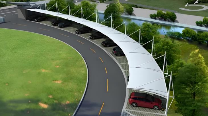 一 膜結(jié)構(gòu)雨棚特點(diǎn)和優(yōu)勢主要體現(xiàn)在造型美觀,自潔性強(qiáng),輕便耐用,施工便捷,環(huán)保節(jié)能。膜材具有良好的可塑性,可設(shè)計(jì)出各種獨(dú)特的造型,如曲線形、球形、錐形等,為建筑增添藝術(shù)美感。膜材料透光率可達(dá)30%,在陽光下不會變黃或霧化,可實(shí)現(xiàn)自然采光,降低白天照明能耗,同時提供柔和均勻的光線。膜材料表面防護(hù)涂層如聚氟乙烯等,有著不發(fā)粘的特性,灰塵等污染物可依靠雨水自然沖洗達(dá)到自潔效果,保持雨棚外觀整潔。膜材重量輕,高強(qiáng)度膜材與張拉技術(shù)應(yīng)用減少了雨棚整體重量,使膜結(jié)構(gòu)雨棚抵御風(fēng)雨能力強(qiáng),對支撐結(jié)構(gòu)要求較低,且高強(qiáng)度膜材配合合理的結(jié)構(gòu)設(shè)計(jì),使其能抵御多種惡劣天氣,使用年限可達(dá)25年以上,膜材強(qiáng)度是普通玻璃的250-300倍,部分采用永久性膜材的車棚可使用三、四十年。相比傳統(tǒng)建筑雨棚,我們的膜材和鋼結(jié)構(gòu)在工廠預(yù)制,縮短工期,現(xiàn)場安裝速度快,施工周期短,對周圍環(huán)境影響小。同等大小的建筑,采用膜結(jié)構(gòu)成本只相當(dāng)于傳統(tǒng)建筑的二分之一或更少,短期應(yīng)用的大跨度建筑時更經(jīng)濟(jì)。且膜結(jié)構(gòu)還具有良好的隔熱性能,可減少能源消耗,部分設(shè)計(jì)還可利用太陽能發(fā)電。