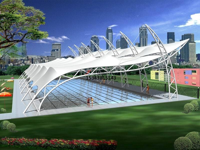 游泳館膜結(jié)構(gòu)是一種適用于大型游泳館建造的先進技術,通?;阡摻Y(jié)構(gòu)或光鋼結(jié)構(gòu)框架等穩(wěn)定型構(gòu)件,采用高強度、高韌性的PVDF膜或PTFE膜作來覆蓋整個館內(nèi)空間,并形成周邊固定結(jié)構(gòu)的耐候和保護部件所構(gòu)成的一種膜形結(jié)構(gòu)體系。