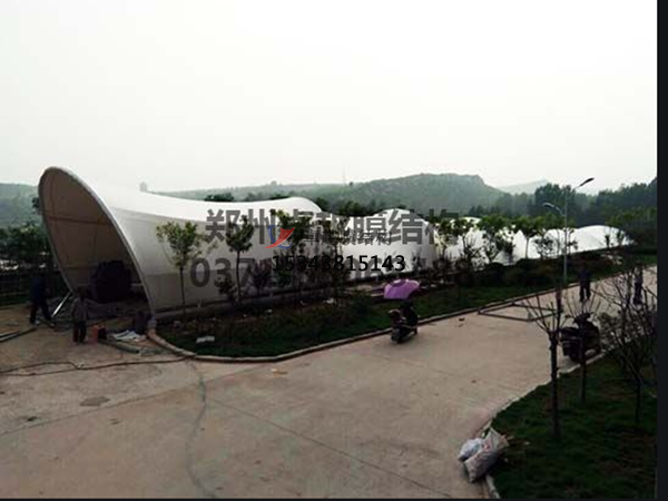 4、輕巧而漂亮的膜結(jié)構(gòu)用于打開(kāi)或半打開(kāi)修建物的遮蓋屋蓋尤為適宜。近年來(lái)在足球、田徑等比賽的體育場(chǎng)中,越來(lái)越多的看臺(tái)挑蓬都選用膜結(jié)構(gòu)。國(guó)外很大露天劇院的舞臺(tái)、博覽會(huì)的展覽館也都以膜作為頂蓋。在我國(guó)廣闊區(qū)域是農(nóng)貿(mào)市場(chǎng)也可大力推廣膜結(jié)構(gòu)。