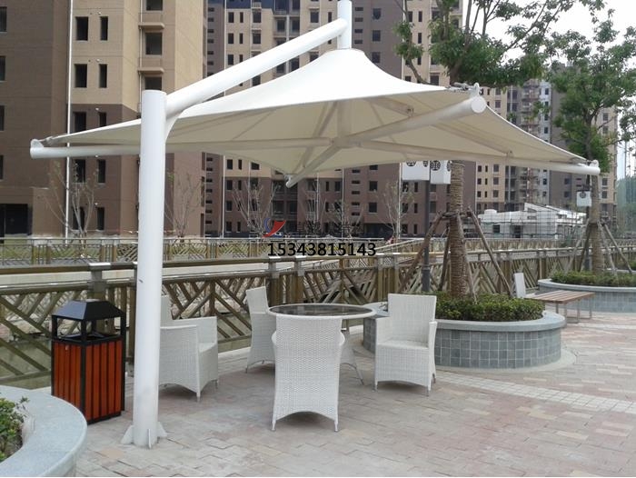 目前,膜結(jié)構(gòu)景觀工程已經(jīng)逐漸應用于體育場、網(wǎng)球場、展覽中心、停車棚、收費站、污水處理等很多設(shè)施中,膜結(jié)構(gòu)景觀的優(yōu)點很多,一是建筑造型優(yōu)美,它打破了純直線建筑風格的模式,以其獨有的優(yōu)美曲線造型,簡潔、明快、剛與柔、力與美的完美組合,呈現(xiàn)給人耳目一新的感覺。二是覆蓋大跨度空間,膜結(jié)構(gòu)景觀由于自重輕,加上鋼索、鋼結(jié)構(gòu)高強度材料的應用,通過合理的設(shè)計受力體系,簡潔合理,故使膜結(jié)構(gòu)景觀適合跨越較大跨度空間,從而形成開闊的無柱大跨度結(jié)構(gòu)體系工程。三是防火性和抗震性,膜結(jié)構(gòu)景觀建筑所采用的膜材具有助燃性和耐高溫性,能很好的滿足防火要求。由于自重輕,柔性強,故抗震性能好。四是施工工期短,由于骨架的鋼結(jié)構(gòu)和膜材裁剪可以在工廠加工制作,現(xiàn)場只需要組裝,施工簡便快捷,施工周期較傳統(tǒng)建筑短。