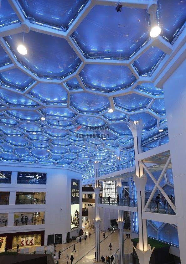工程結(jié)構(gòu)形式:骨架張拉商場頂棚膜結(jié)構(gòu)