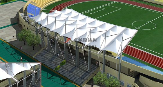 膜結(jié)構(gòu)看臺(tái)是近年來膜結(jié)構(gòu)材料應(yīng)用的一個(gè)新領(lǐng)域。膜結(jié)構(gòu)建筑能很好地覆蓋所有的看臺(tái)。膜結(jié)構(gòu)的張緊方式使建筑的空間跨度變大,同時(shí)減小了建筑的結(jié)構(gòu),降低了建筑的整體重量,使建筑變得簡(jiǎn)單和安全。這些是大量用戶選擇腦回結(jié)構(gòu)的關(guān)鍵因素。薄膜材料的表面有一層涂層,涂層是為了防止灰塵和雨水的影響,起到保護(hù)薄膜結(jié)構(gòu)使用壽命的作用。