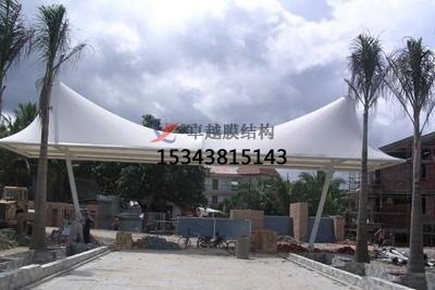 2、景觀膜結構是目前發(fā)展很快的一種新型空間結構,是一種效率極高的張力集成體系,可以充分發(fā)揮鋼索的強度與張拉整體結構的空間作用。它通過鋼骨架、鋼索與膜材共同受力形式穩(wěn)定曲面來覆蓋建筑空間,具有高度的形體可塑性和結構靈活性,即通過對膜材內(nèi)部施加一定的預張力,使其具備了抵抗外荷載能力,從而充當結構材料的一種結構體系。我公司先后在池州地區(qū)承接了池州百荷公園景觀、皋城中心廣場景觀、池州萬達廣場景觀小品的設計施工,簡介如下: