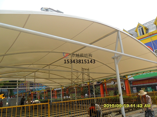 膜結構雨棚是一種全新的建筑結構形式,它集建筑學、結構力學、精細化工與材料科學、計算機技術等為一體,具有很高技術含量。其曲面可以隨著建筑師的設計需要任意變化,結合整體環(huán)境,建造出標志性的形象工程。