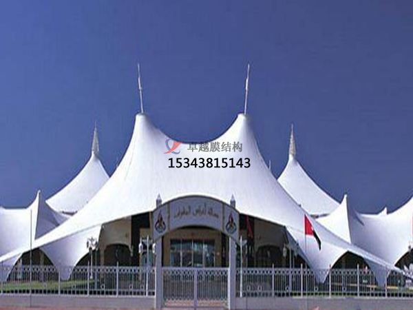 膜結(jié)構(gòu)建筑是由多種高強薄膜材料及加強構(gòu)件(鋼架、鋼柱或鋼索)通過一定方式使其內(nèi)部產(chǎn)生一定的預張應力以形成某種空間形狀,作為覆蓋結(jié)構(gòu),并能承受一定的外荷載作用的一種空間結(jié)構(gòu)形式。