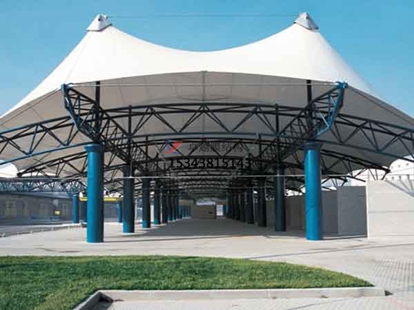 膜結(jié)構(gòu)雨棚按其結(jié)構(gòu)形式可分為鋼結(jié)構(gòu)、張拉結(jié)構(gòu)及充氣結(jié)構(gòu);按膜材特性又可分為永久性膜結(jié)構(gòu)(膜材使用年限可超過(guò)25年)、半永久性膜結(jié)構(gòu)(膜材使用年限為10-15年)及臨時(shí)性膜結(jié)構(gòu)(膜材使用年限為3-5年);按膜材成分又可分為PVDF膜材、PTFE膜材及ETFE膜材。