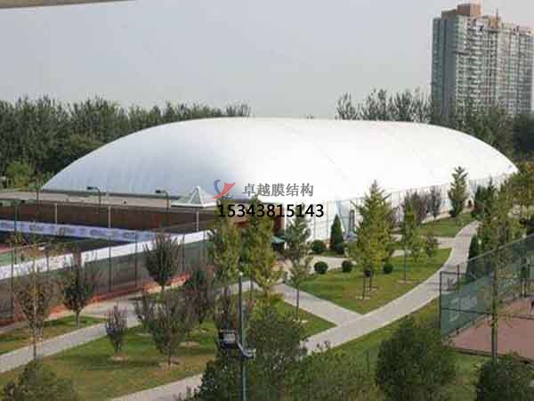 2、嘉峪關(guān)合作產(chǎn)業(yè)園網(wǎng)球館充氣膜結(jié)構(gòu)罩棚施工案例