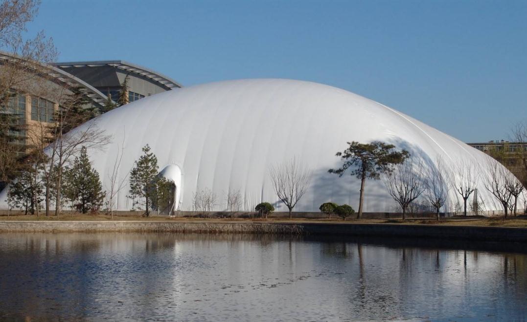 充氣膜體育館是用特殊的建筑膜材做外殼,配備一套智能化的機(jī)電設(shè)備在氣膜建筑內(nèi)部提供空氣的正壓,把建筑主體支撐起來(lái)的一種建筑結(jié)構(gòu)系統(tǒng)。