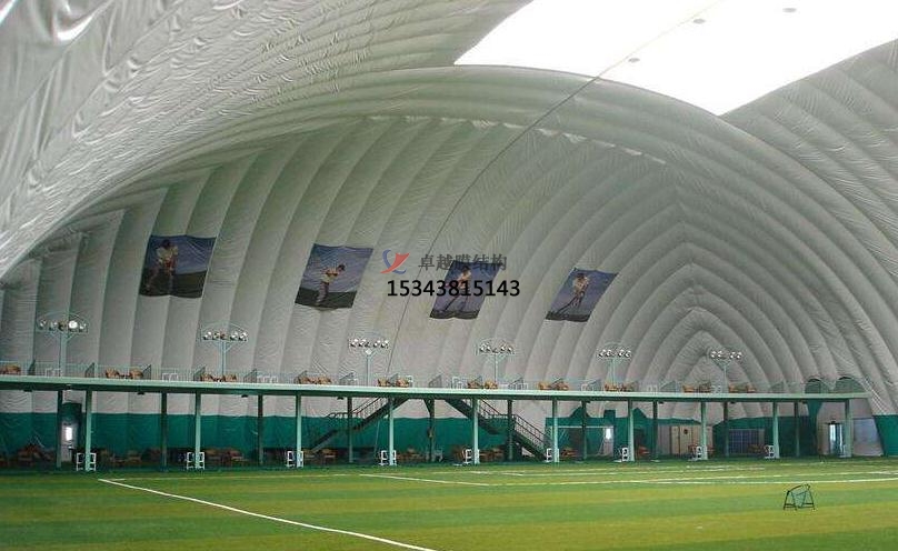2、膜結(jié)構(gòu)是目前發(fā)展很快的一種新型空間結(jié)構(gòu),是一種效率極高的張力集成體系,可以充分發(fā)揮鋼索的強(qiáng)度與張拉整體結(jié)構(gòu)的空間作用。它通過鋼骨架、鋼索、充氣與膜材共同受力形式穩(wěn)定曲面來覆蓋建筑空間,具有高度的形體可塑性和結(jié)構(gòu)靈活性,即通過對膜材內(nèi)部施加一定的預(yù)張力,使其具備了抵抗外荷載能力,從而充當(dāng)結(jié)構(gòu)材料的一種結(jié)構(gòu)體系。我公司先后在甘南地區(qū)承接球場頂棚罩棚設(shè)計(jì)施工案例,簡介如下:
