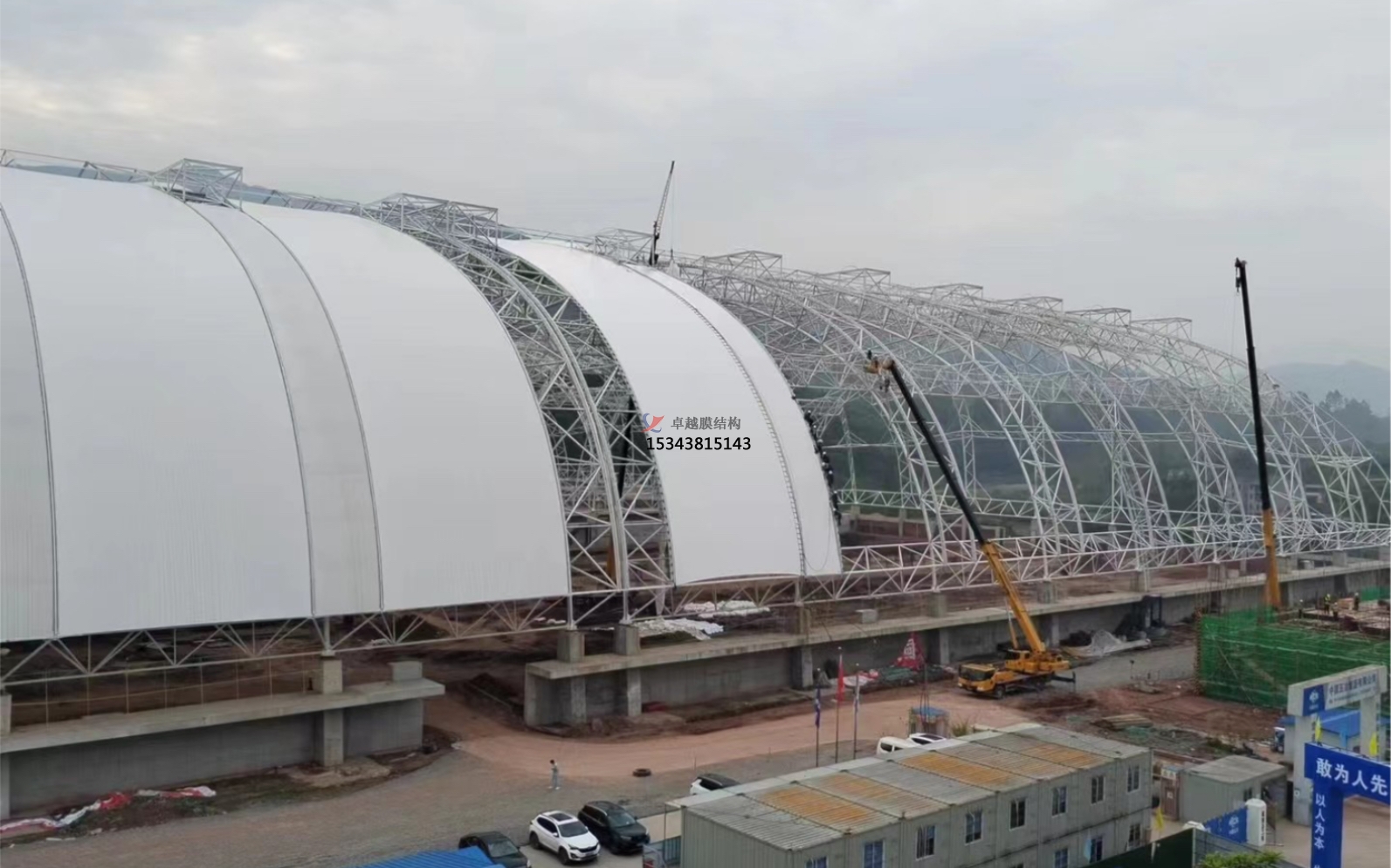 再次,膜結(jié)構(gòu)煤棚的空間利用率高。由于膜結(jié)構(gòu)內(nèi)部無需使用結(jié)構(gòu)或梁柱,使得其內(nèi)部擁有超大空間,并且能讓這空間被充分使用。這對于煤炭儲存等需要大跨度空間的行業(yè)來說,無疑是一個巨大的優(yōu)勢。