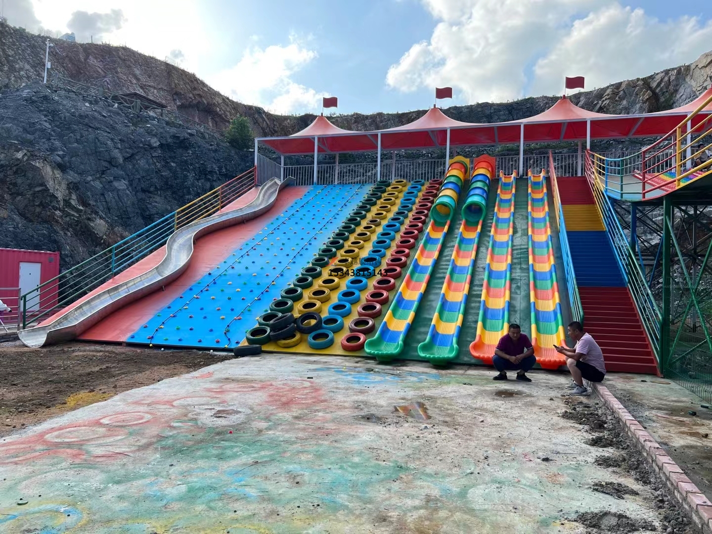 鄭州彩虹滑道游樂設(shè)備紅色遮陽(yáng)棚結(jié)構(gòu)設(shè)計(jì)生產(chǎn)