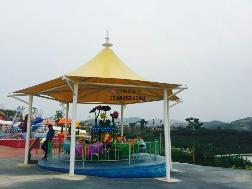 3:簡易拆卸,移動和可以更換性能,游樂園的建筑和其他項目建筑的很大不同是,游樂園需要定期或者不定期做一些改造或者調(diào)整,這樣游客才會重復(fù)來玩。膜結(jié)構(gòu)恰好能滿足這一點,比如,同樣是一個休息亭,換個顏色,或者換個造型,只需要增加或者減少局部的鋼結(jié)構(gòu)桿件,換一塊膜就可以搞定,傳統(tǒng)的結(jié)構(gòu)是沒辦法實現(xiàn)的。